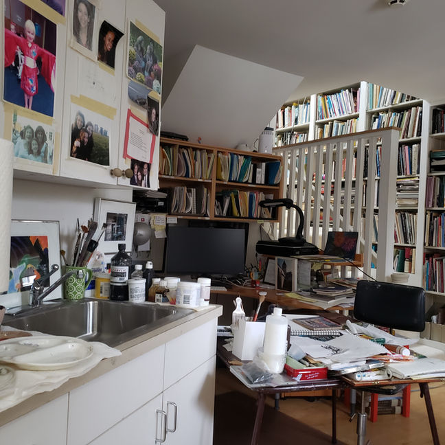 Patz replaced a tiny porch and overgrown bushes with this light-filled studio, in which she draws and paints in pencil, pen and ink, charcoal, pastels, oil and/or acrylic.